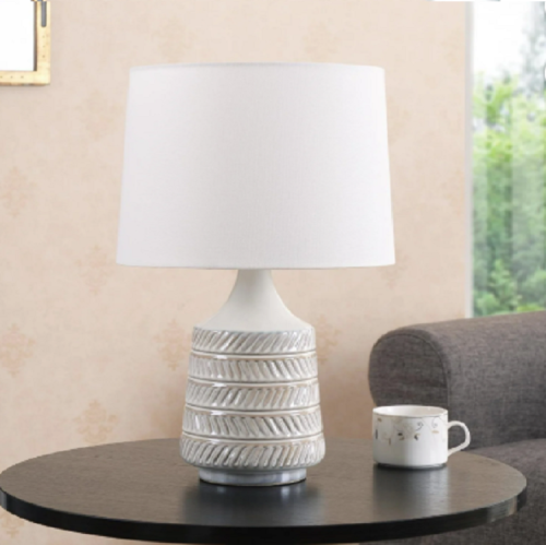 Better Homes & Gardens White and Beige Etched Ceramic Table Lamp with Shade 17″H