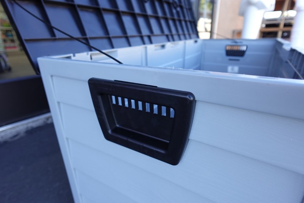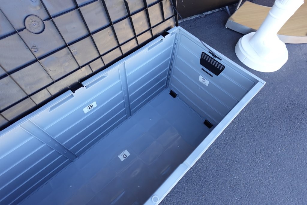 Dimension: 44×21.3×19.3 inches Material: Polypropylene Resin Colour: Black&Grey Capacity: 260L/75Gal Weight:15.4 LB