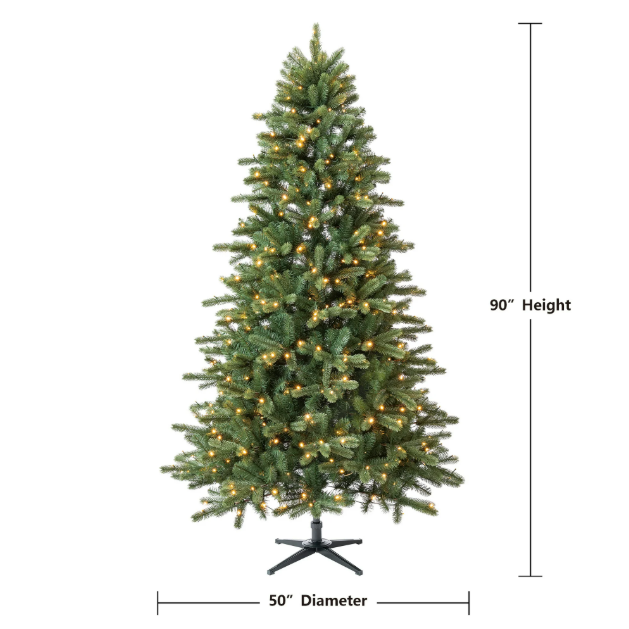 - Stands 7.5 feet tall with a 50 inch diameter for a full and elegant holiday centerpiece