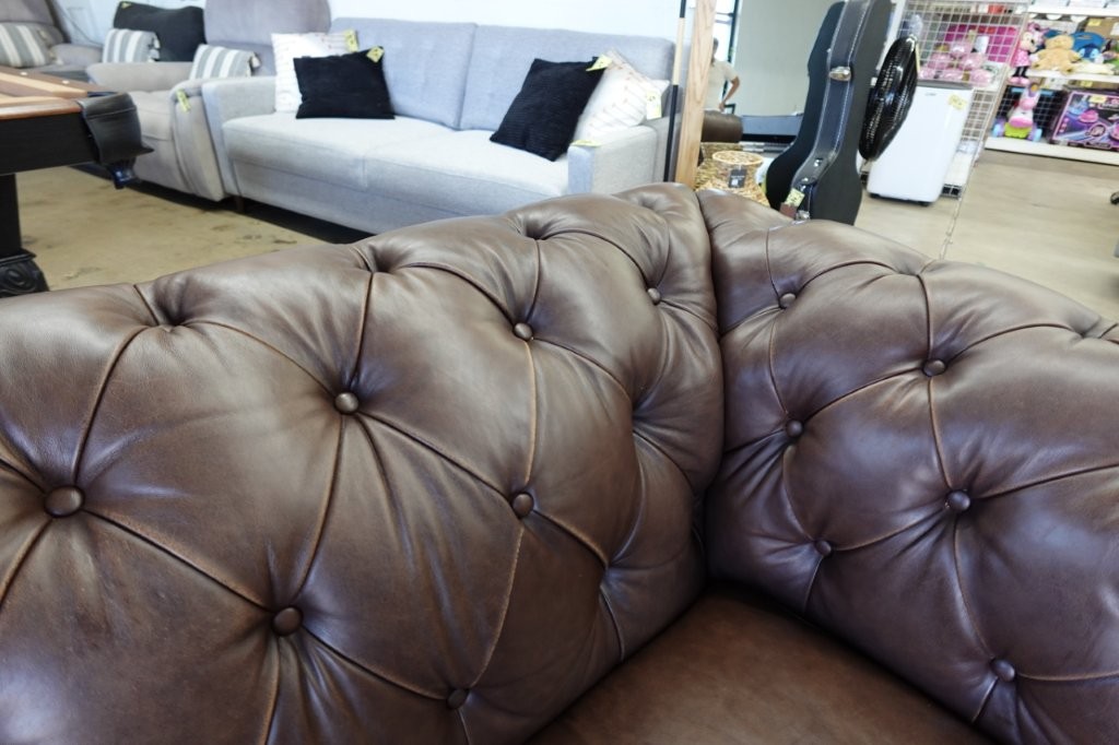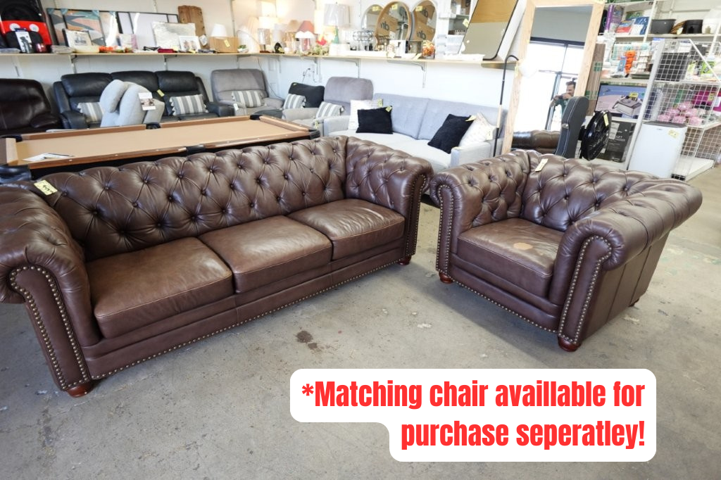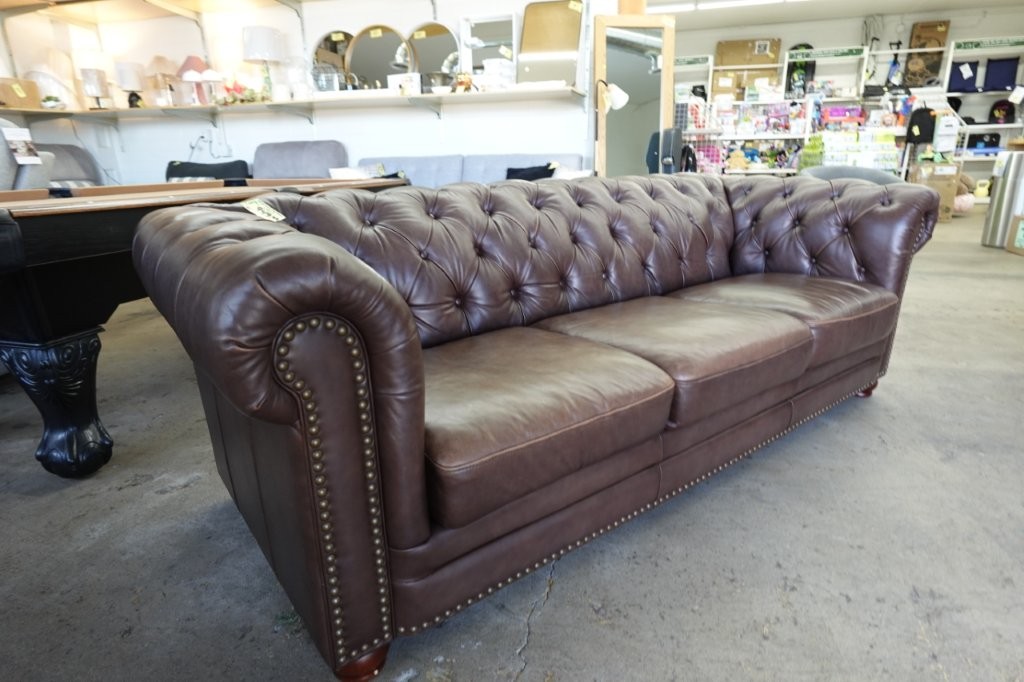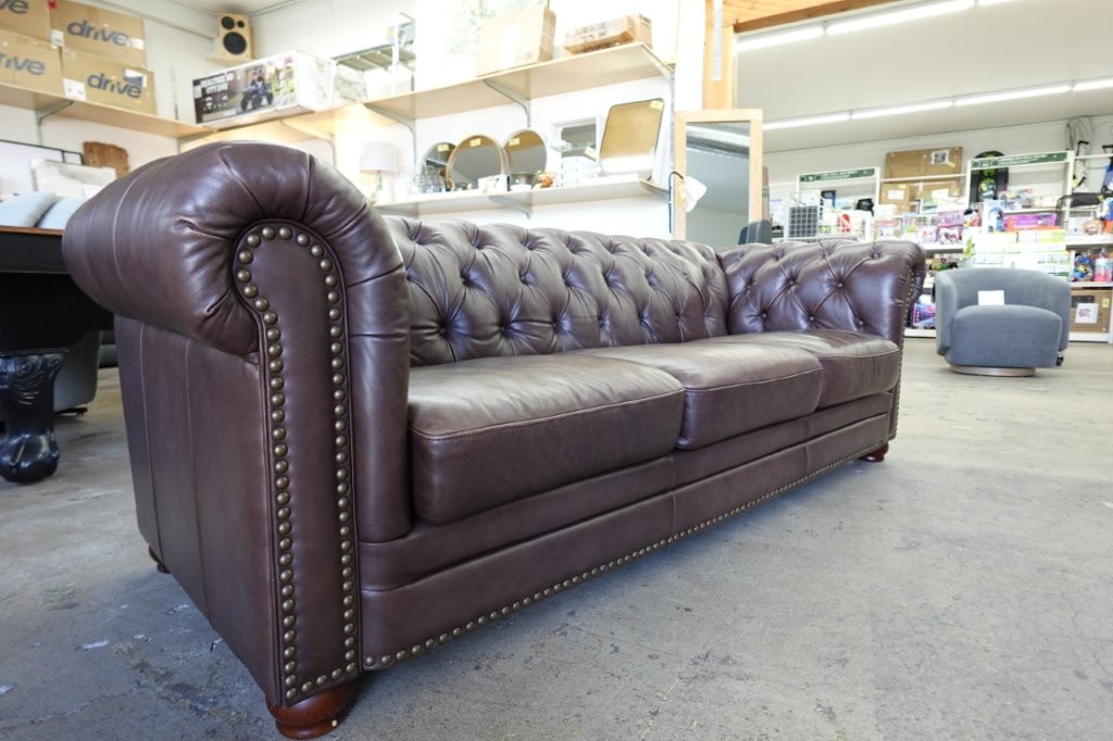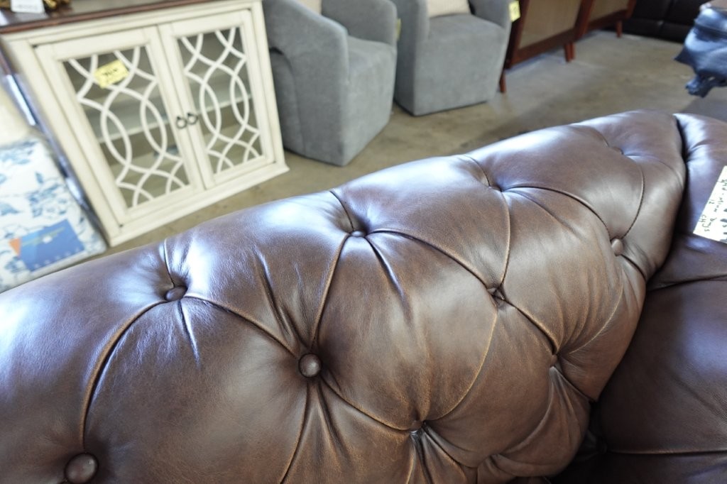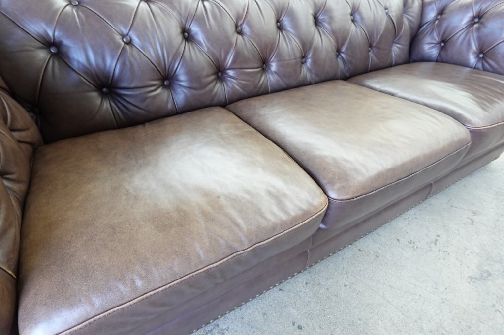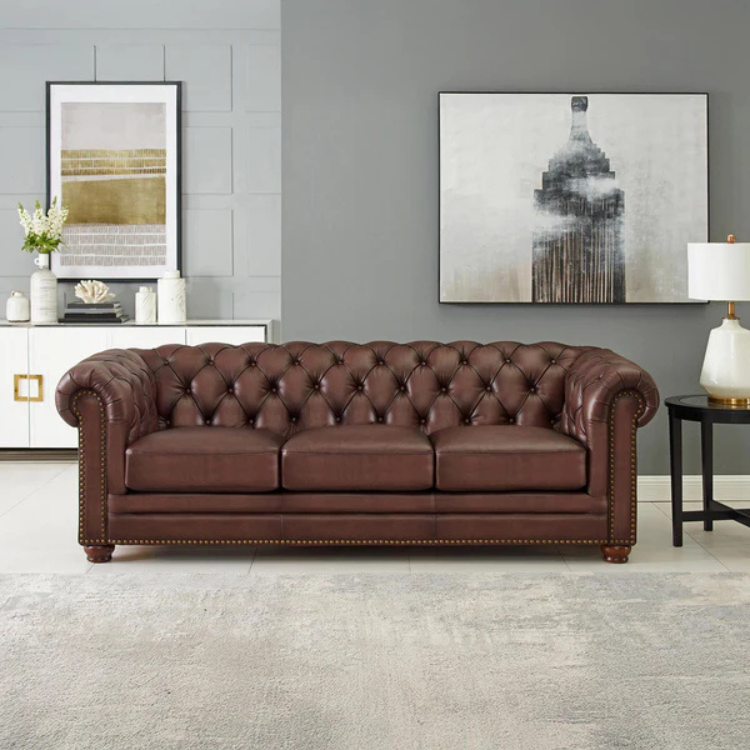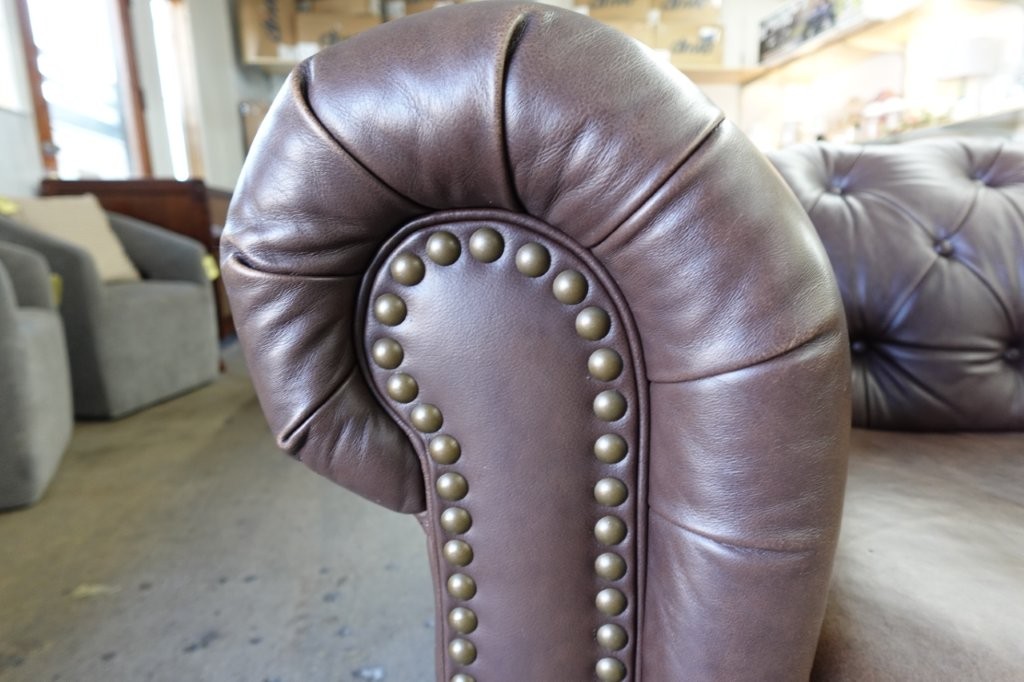 • Classic button-tufted back with rolled Chesterfield-style arms