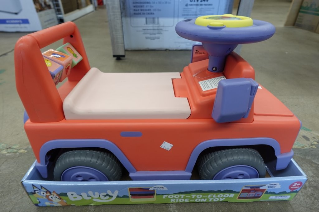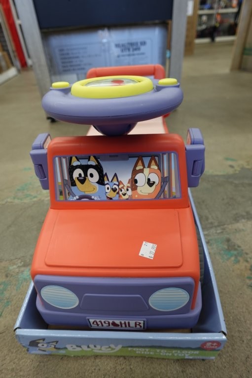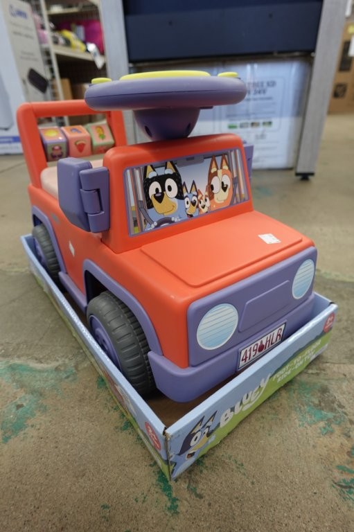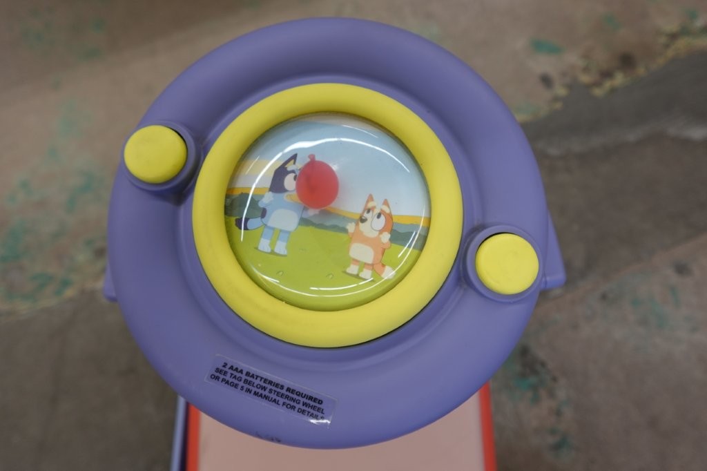 - Steering wheel plays Bluey and Bingo voice lines and songs (batteries required)