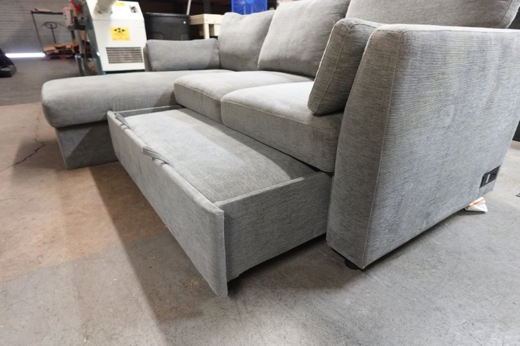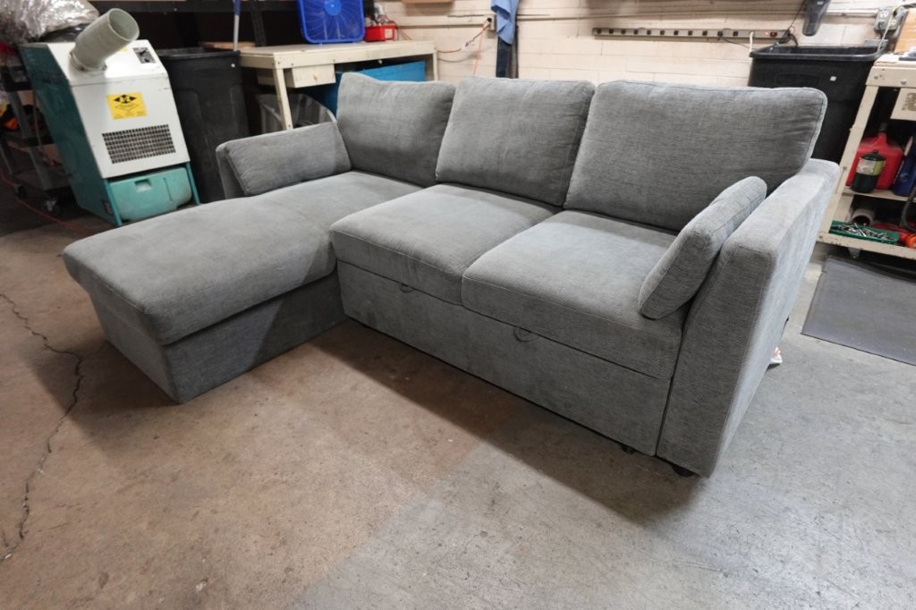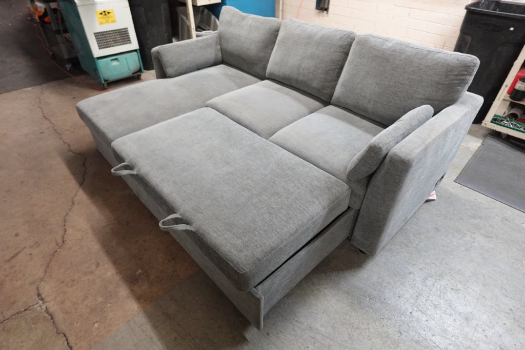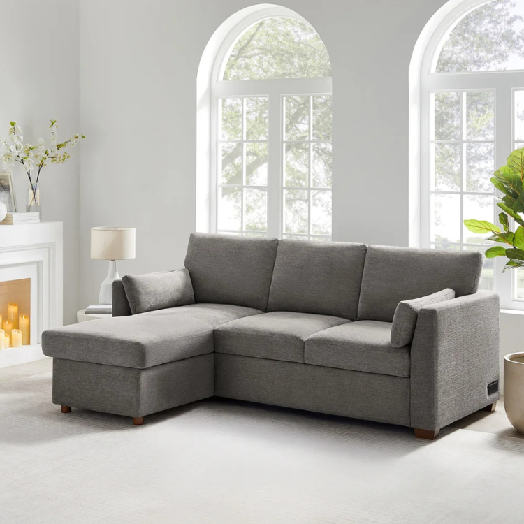 - Pull‑out sleeper converts the sofa into a queen‑size bed for guests