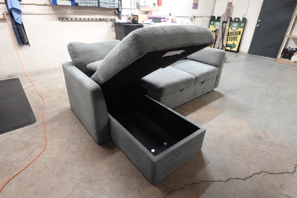 - Lift‑up chaise storage compartment for blankets, pillows, and accessories