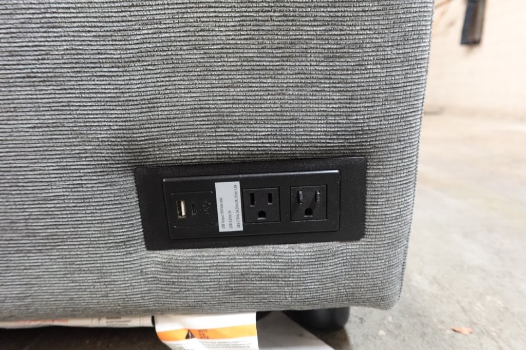 - Built‑in power strip with outlets, USB, and USB‑C charging ports