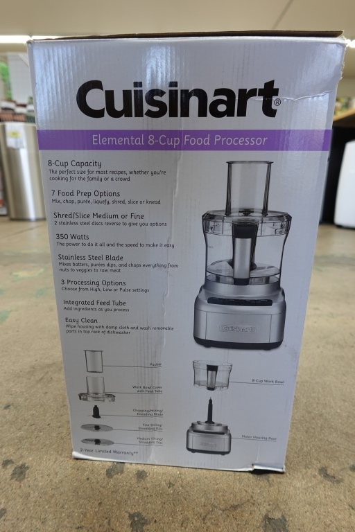 • 8‑cup capacity bowl handles chopping, slicing, shredding, and mixing