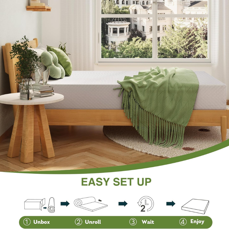 - Compatible with most bed frames and arrives compressed in a box