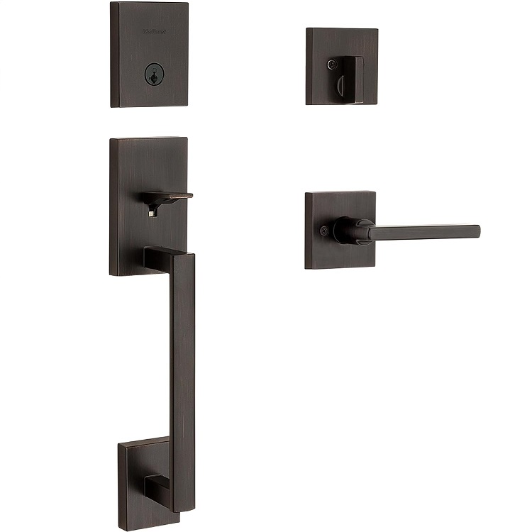 • Exterior Keyed Deadbolt, Handleset, Interior Turn Piece, Interior Lever, Adjustable Latch, 2 Keys, Screws, Strike Plate, SmartKey Tool, Installation Hardware, Install Guide