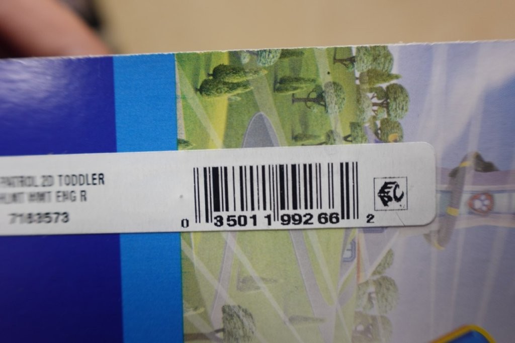 - Toddler bike helmet for ages 3+ with Paw Patrol multi-character graphics