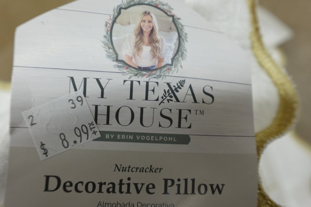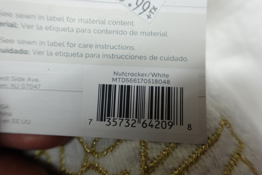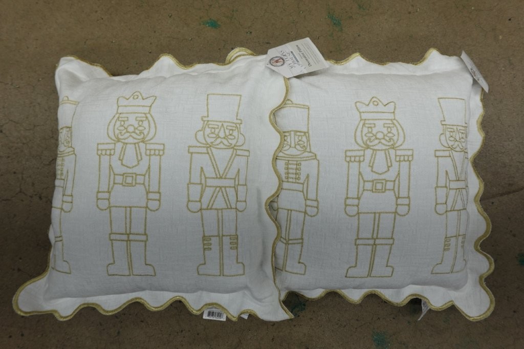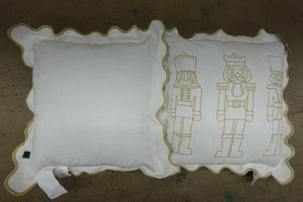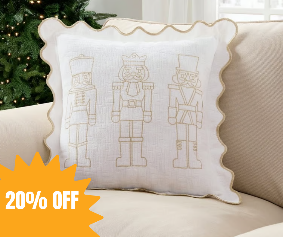 - Features gold embroidered nutcracker design with scalloped trim