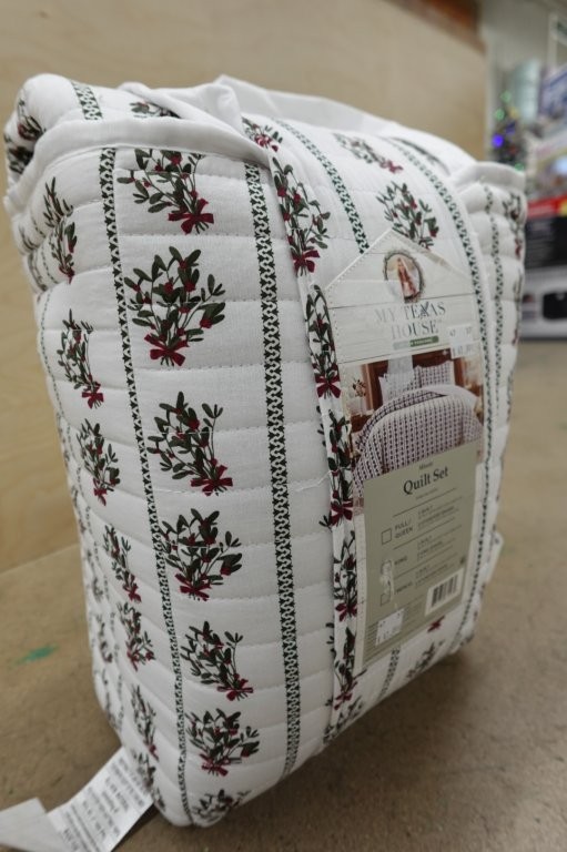 • Features green stripes and mistletoe accents for a festive seasonal look