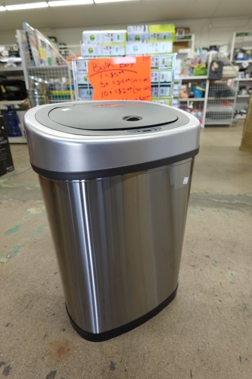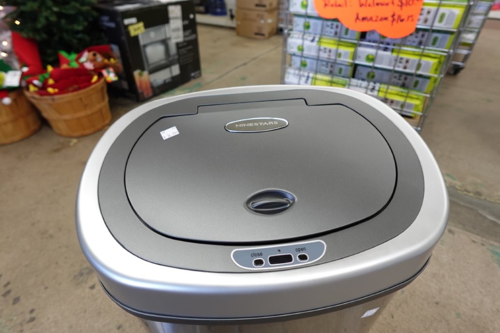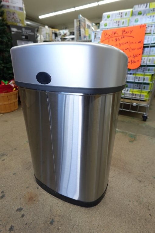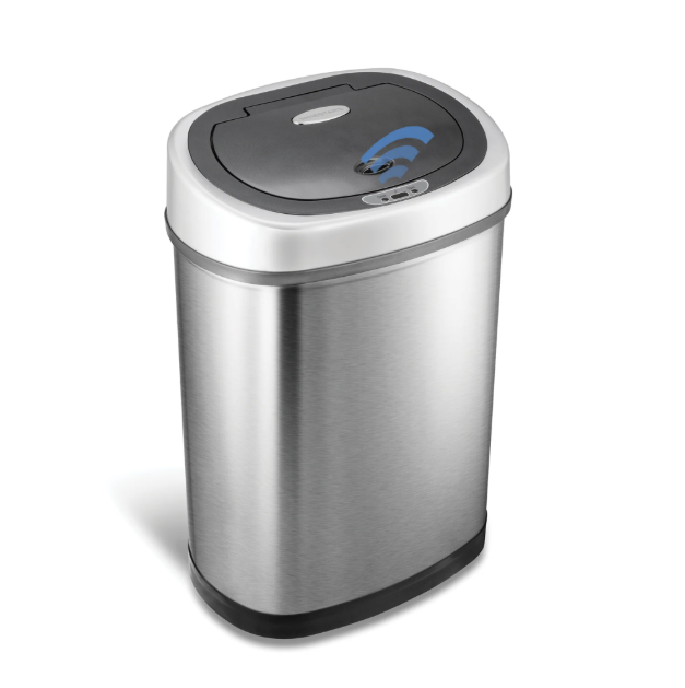 • Nine Stars Automatic Kitchen Trash Can, 11 Gallon Stainless Steel Motion Sensor Garbage Bin with Soft Close Lid, Silver