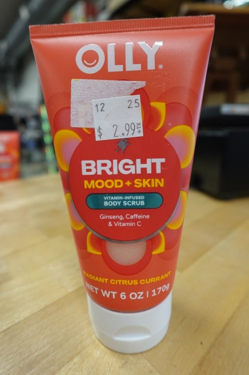 • Vitamin‑infused body scrub exfoliates to remove dull, dry skin