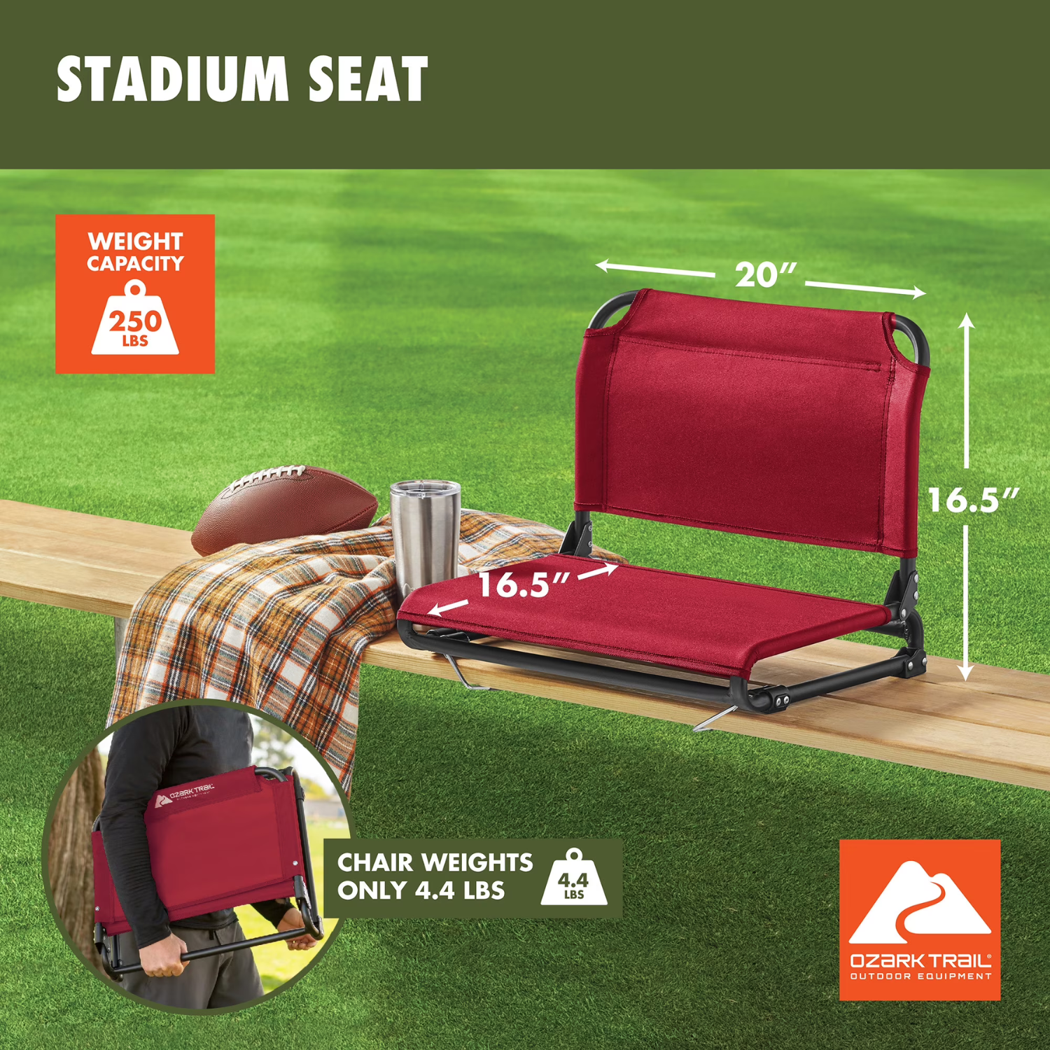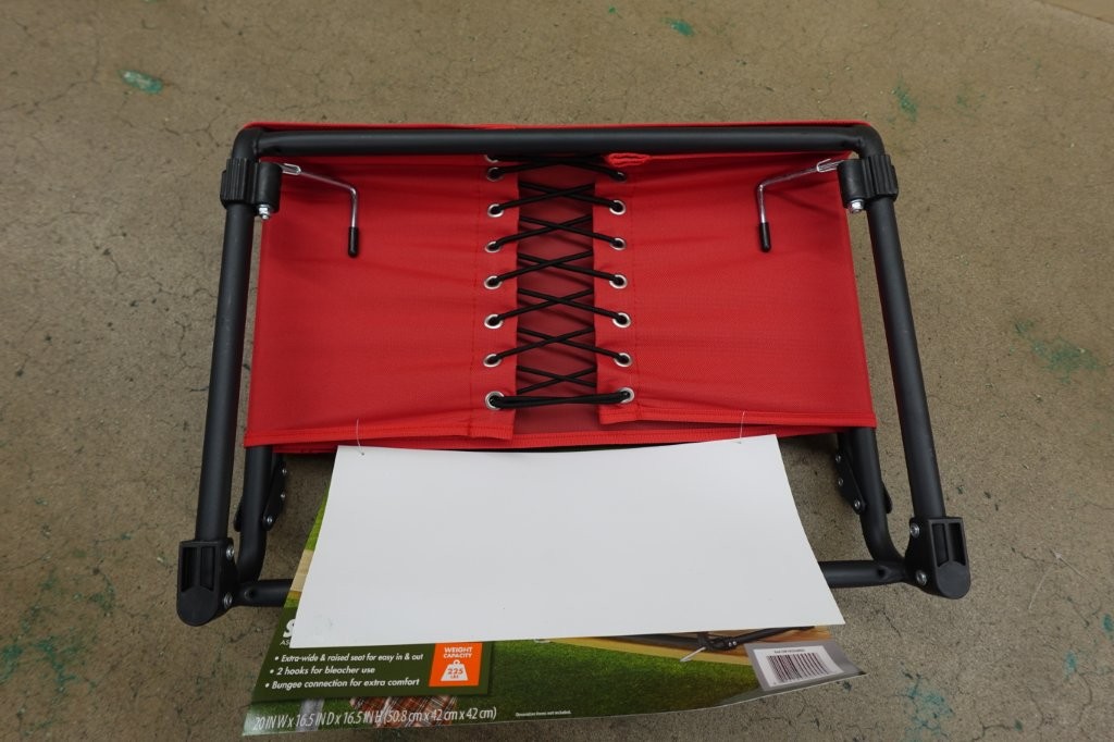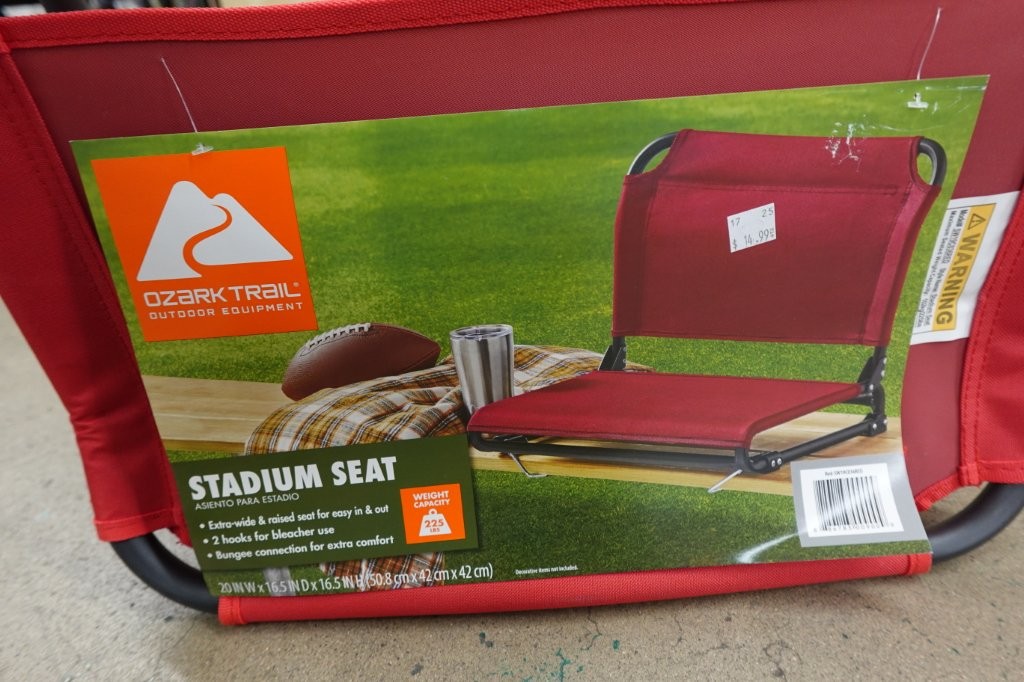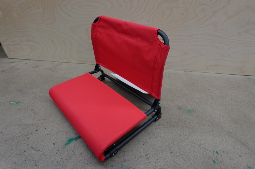 - Padded seat for comfort on hard bleachers