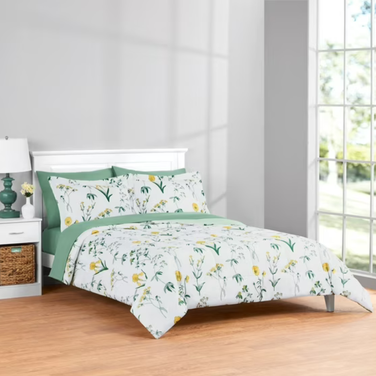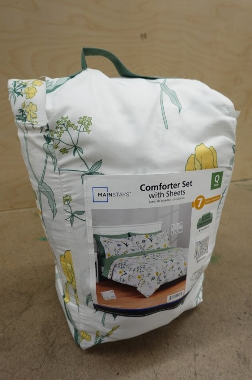 - Complete 7-piece set: comforter, fitted sheet, flat sheet, 2 pillowcases, and 2 shams