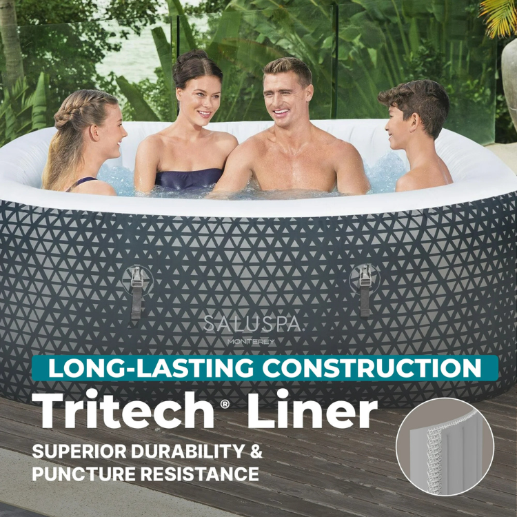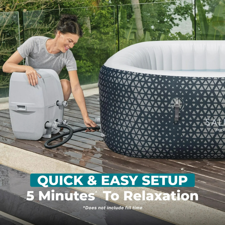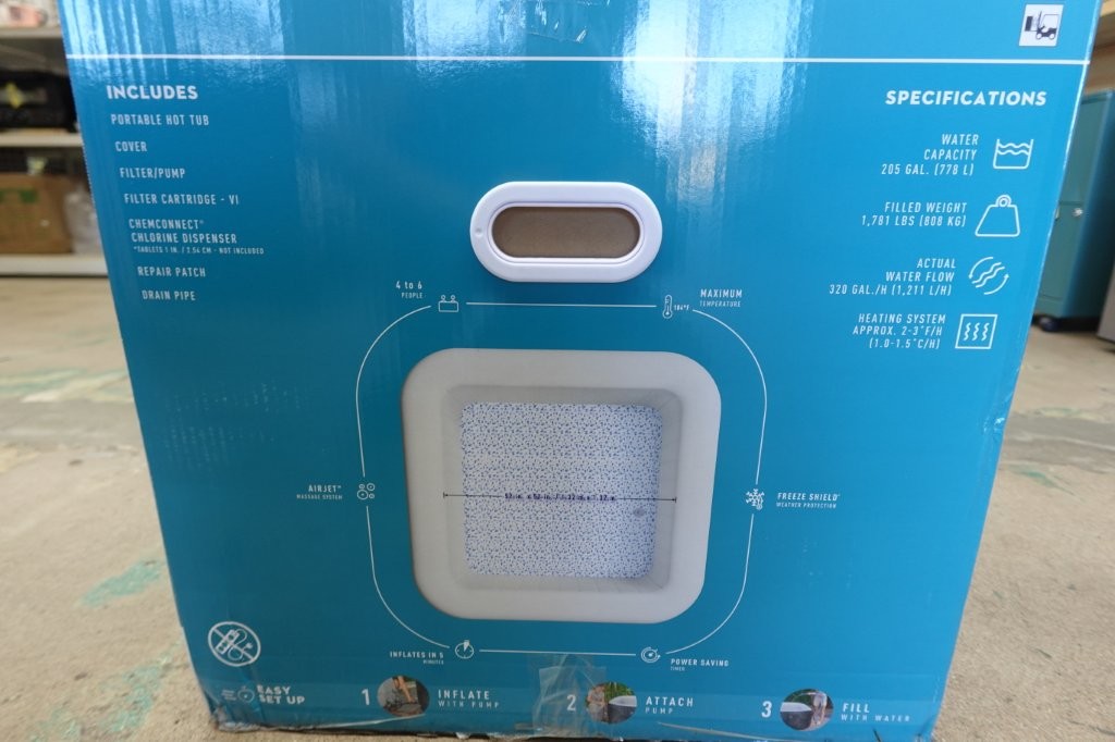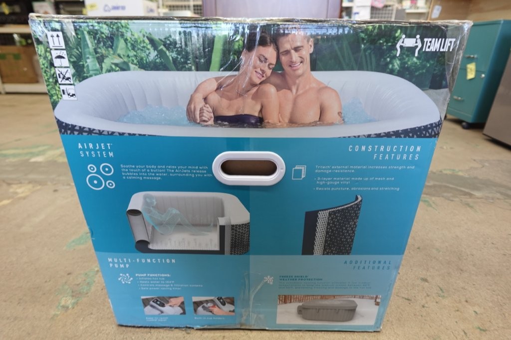 • Inflatable square hot tub with 140 AirJet bubbles for relaxing hydrotherapy