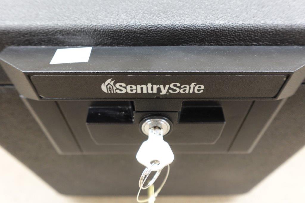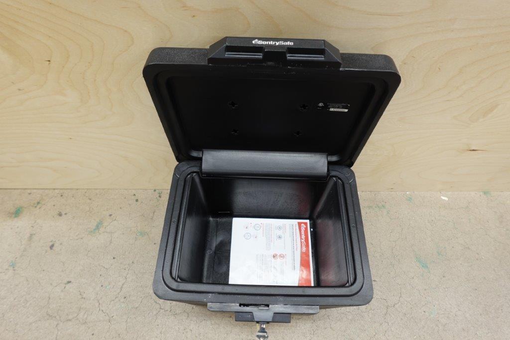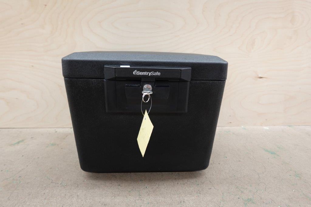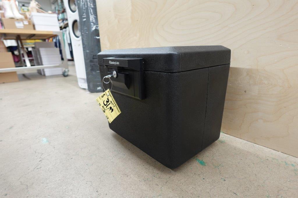 - Fireproof safe features a flat key lock to prevent the lid from opening in the event of a fire