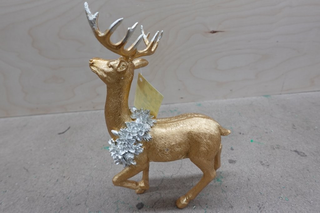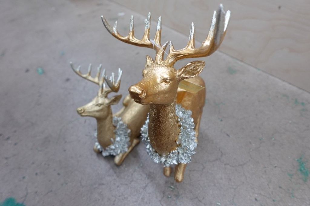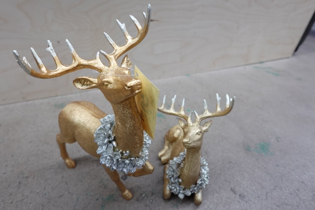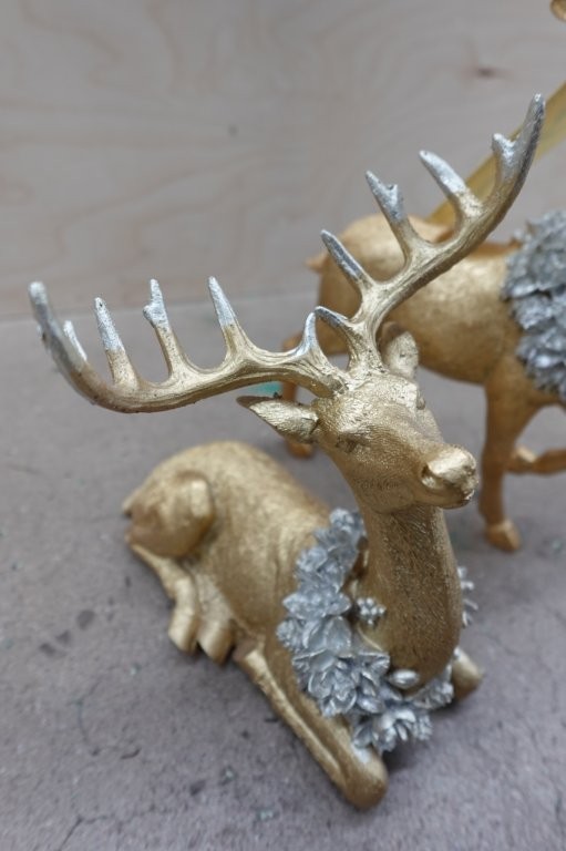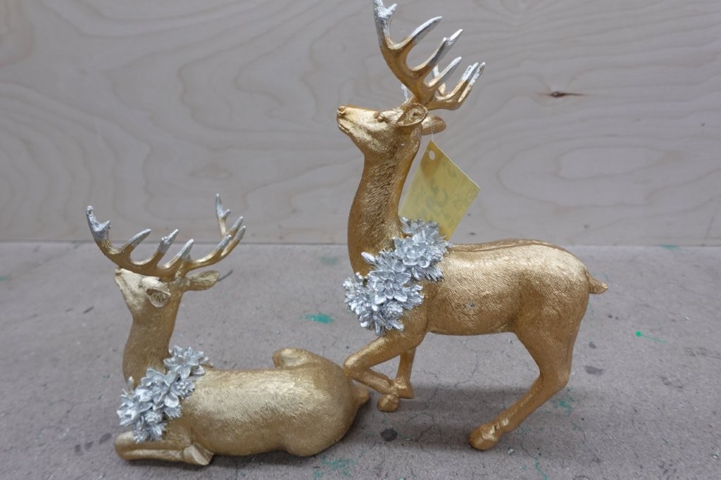 - Set of 2 gold‑finish reindeer figurines with wreath accents