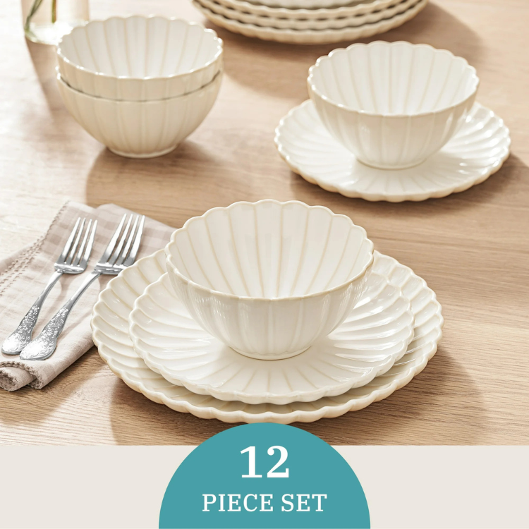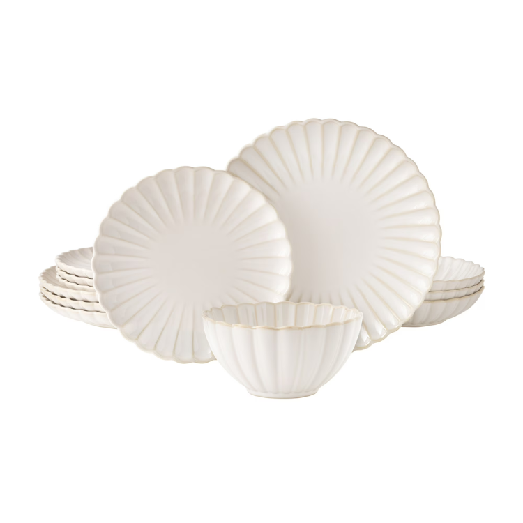 • 12-piece set includes 4 dinner plates, 4 salad plates, and 4 bowls (service for four)